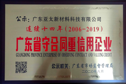 广东亚太公司荣获“连续十四年广东省守合同重信用企业”阅读次数:1025 | 发布日期:2020/7/2 | 作者: | 来源: