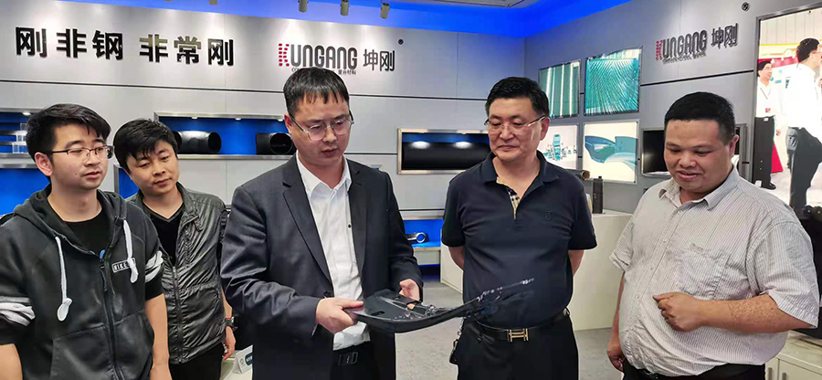 杨忠一行先后参观了产品展示厅,深入车间现场查看碳纤维汽车零部件产品的制造过程、产品质量等情况,认真询问产品制造的每一个步骤,在技术交流会上,双方就技术层面、工艺制程的风险管控和对策进行了深入交流和探讨。
