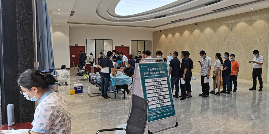 公司董事长朱增余高度重视,5月份将体检事项提上日程,提醒各事业部要合理安排生产和人员有序体检,达到既不影响生产,也不影响体检的效果。在体检过程中,董事长亲临现场了解体检情况和科目,与职工一道参加了体检。