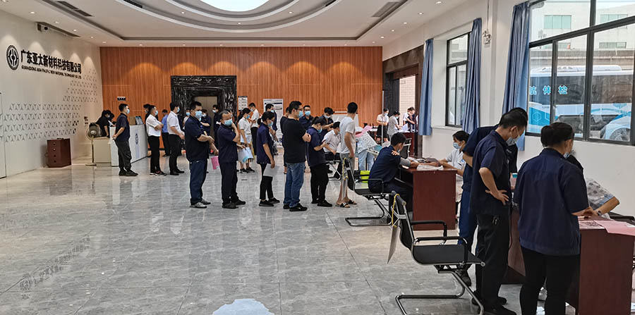 职工是企业的第一财富,公司自成立以来秉承人文关怀,坚持“以人为本”,关爱职工身心健康,不断完善公司福利制度。2021年6月21日上午,在做好疫情防控的基础上,邀请四会慈航医院组织医护人员,开体检专车到公司为全体职工开展体检活动,让职工能够及时了解自身的健康,增强职工的健康意识,提高工作效率。
