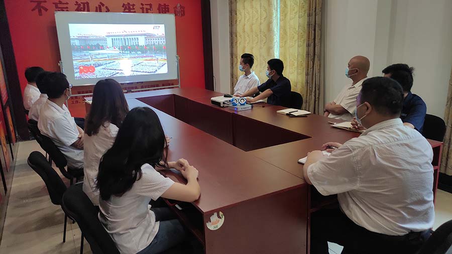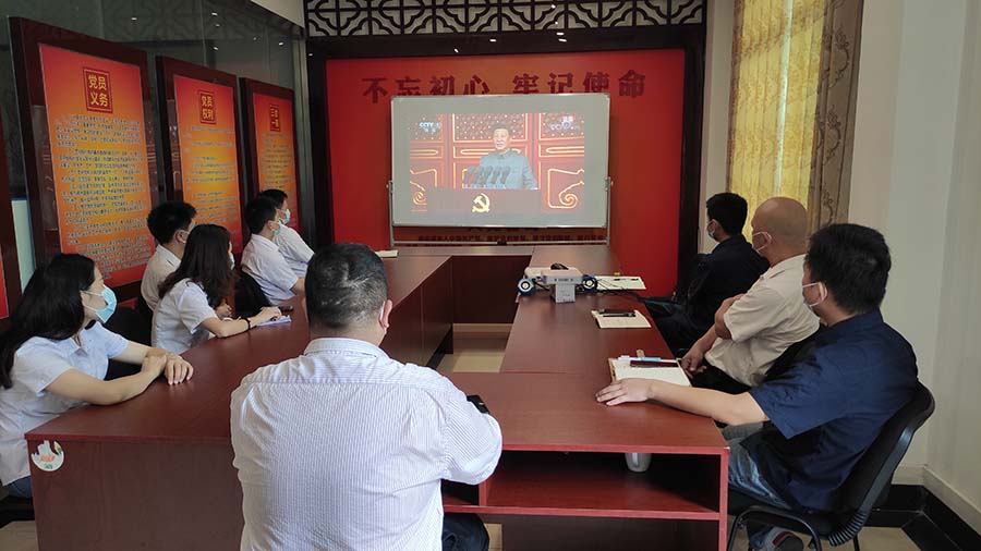 百年征程波澜壮阔,百年初心历久弥坚。7月1日上午,庆祝中国共产党成立100周年大会在北京天安门广场隆重举行。中共中央总书记、国家主席、中央军委主席习近平发表重要讲话。乐鱼在线平台党支部组织全体党员、入党积极分子、部分中层以上管理干部在支部初心堂,认真收听收看现场直播。庆祝大会上,习近平代表党和人民庄严宣告,经过全党全国各族人民持续奋斗,我们实现了第一个百年奋斗目标,在中华大地上全面建成了小康社会,历史性地解决了绝对贫困问题,正在意气风发向着全面建成社会主义现代化强国的第二个百年奋斗目标迈进。这是中华民族的伟大光荣,这是中国人民的伟大光荣,这是中国共产党的伟大光荣。习近平讲话结束时,全场起立,现场响起长时间热烈掌声。