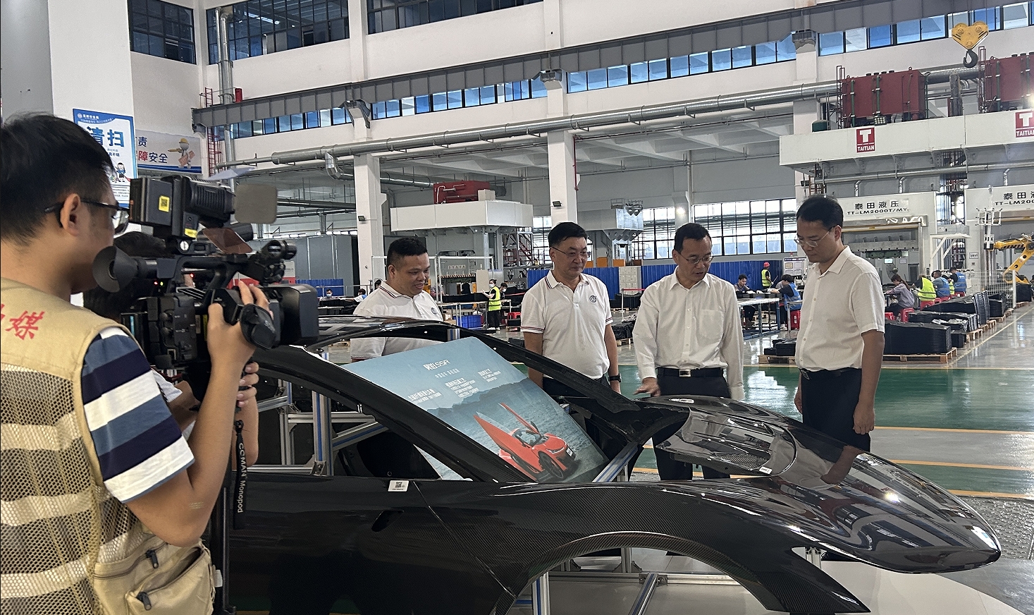 张爱军书记一行认真观看了广东亚太高性能复合材料汽车零部件生产基地正在生产运作的2条2000T、1条1200T、4条315T的高性能复合材料汽车零部件生产线和科研新品展区,了解企业生产经营发展、科技创新成果转化、高性能复合材料汽车零部件市场配套及未来发展规划的情况。