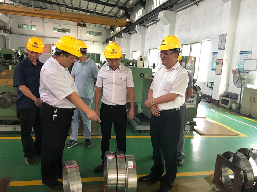 等领导的陪同下深入复材事业部车间了解智能设备生产情况。
