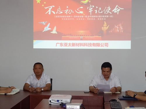 第一批学习总结会上,公司总经理朱增余强调:全体党员和管理者,要以全党上下正在开展的“不忘初心,劳记使命”主题教育活动为契机,结合企业的发展和各自岗位,“自我学习、自我对照”,“客观公正、实事求是”,“打破依赖、言行一致”,“精诚团结,上下联动”,围绕公司战略发展目标再造一个“新亚太”而努力奋斗。